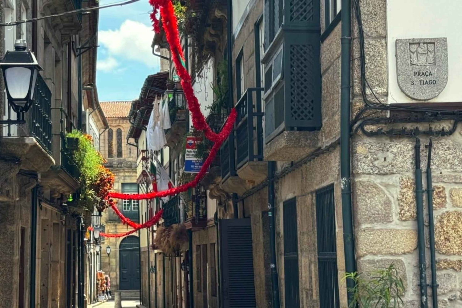 Starte von Porto aus zu einer malerischen Reise, um die historischen Städte Braga und Guimarães zu erkunden. Der erste Halt ist das historische Zentrum von Braga, wo du die wichtigsten Sehenswürdigkeiten wie den Arco da Porta Nova, die beeindruckende Sé de Braga (Kathedrale von Braga) und den mittelalterlichen Paço de Braga erkunden kannst. Besuche den wunderschönen Jardim de Santa Bárbara und die charmante Kirche Santa Cruz.