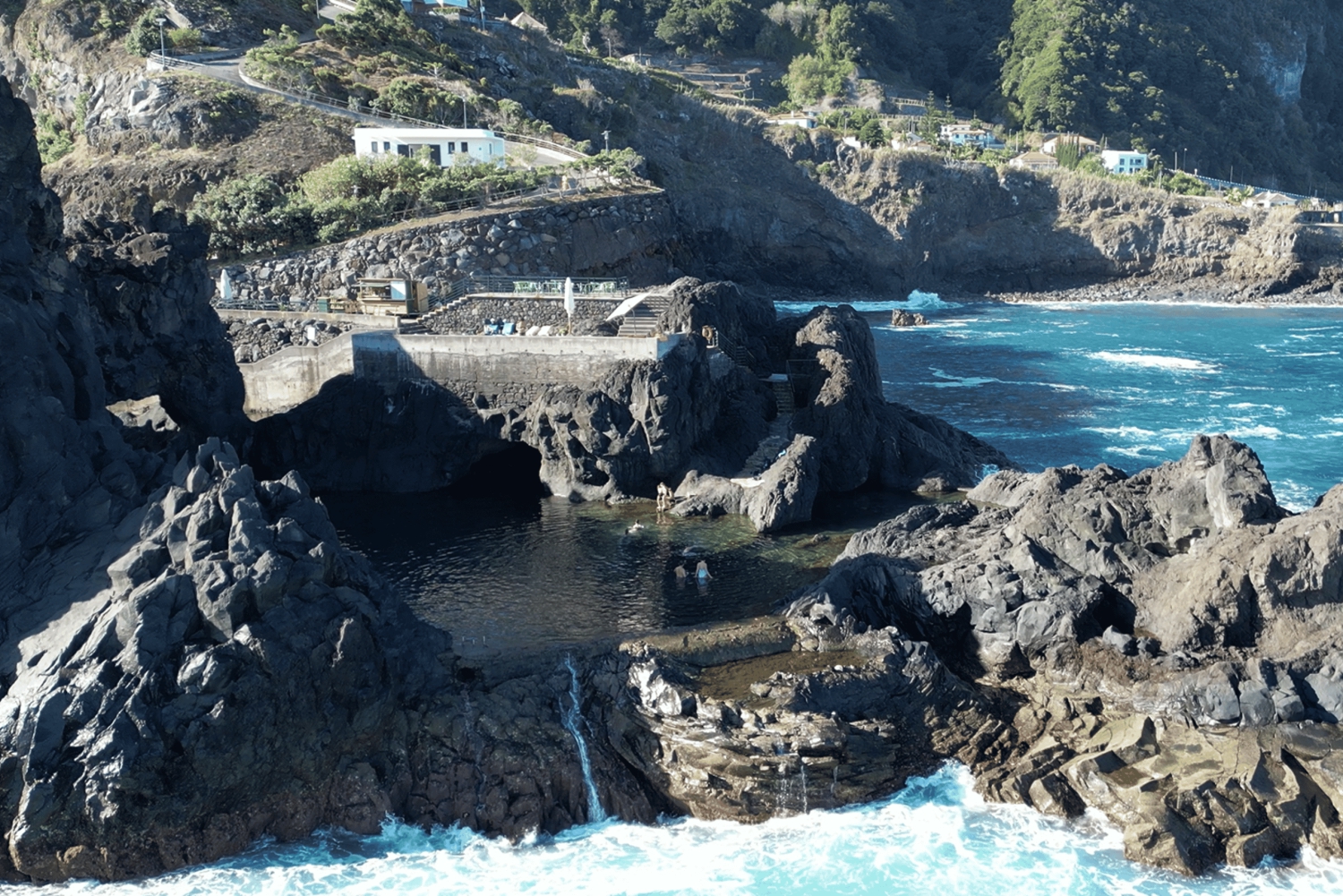 Matkalla pääset näkemään upeita vesiputouksia. Porto Moniz on seuraava pysähdyspaikkamme. Täällä sinulla on mahdollisuus uida maailman kuvatuimmassa laavakivialtaassa.