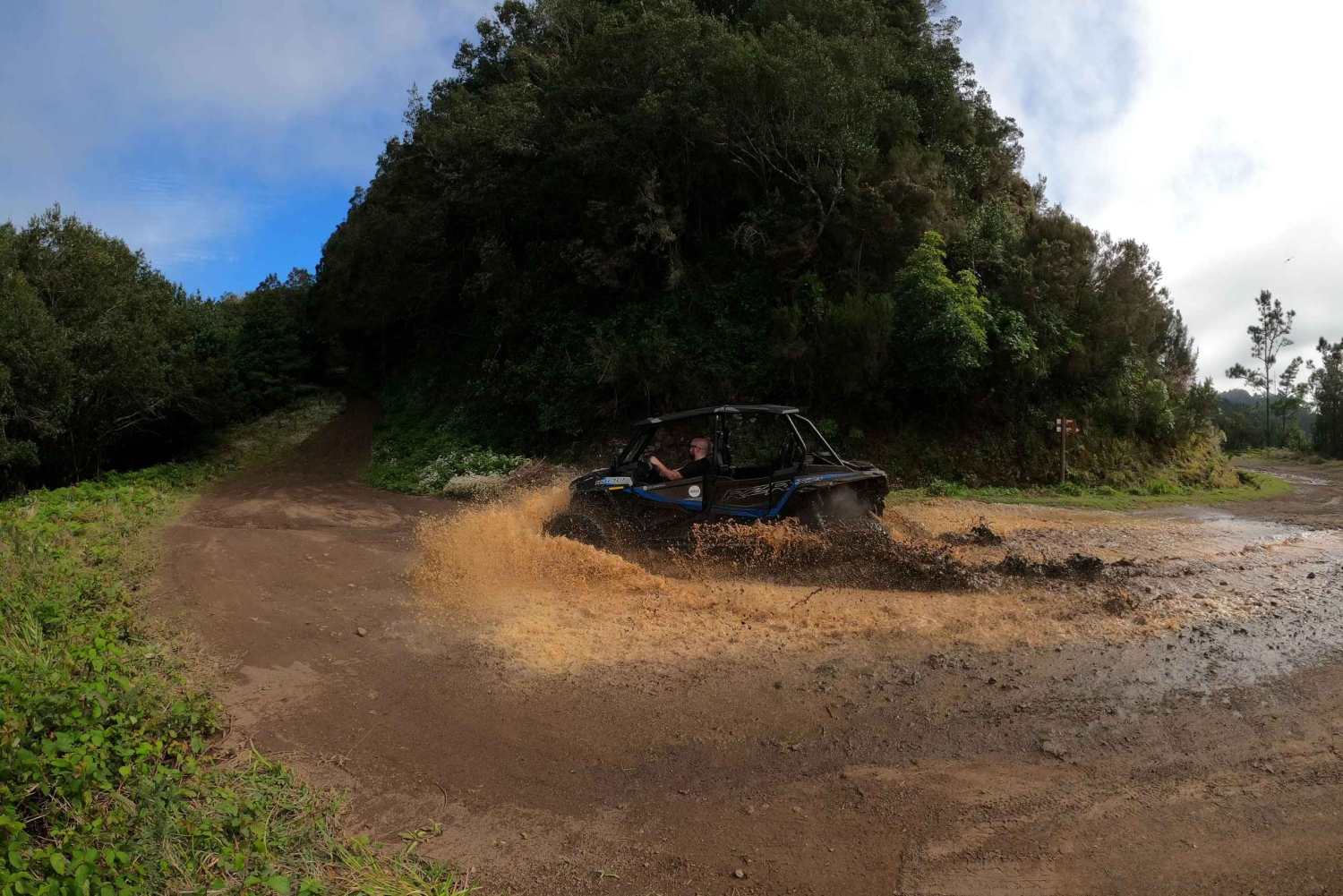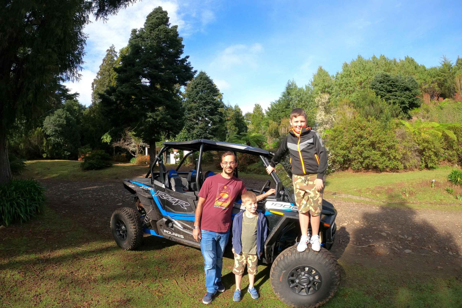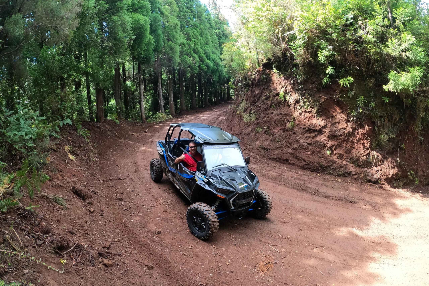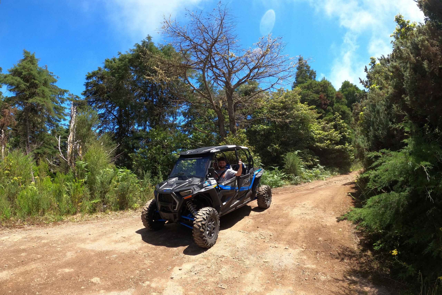 フンシャルでのこの冒険ツアーでは、ポラリス RZR XP 1000 4 人乗りバギーでオフロード地形を体験してください。ポルト ダ クルスとファイアルを眺め、Serra das Funduras の林道を走り、Santo da Serra に向かいます。