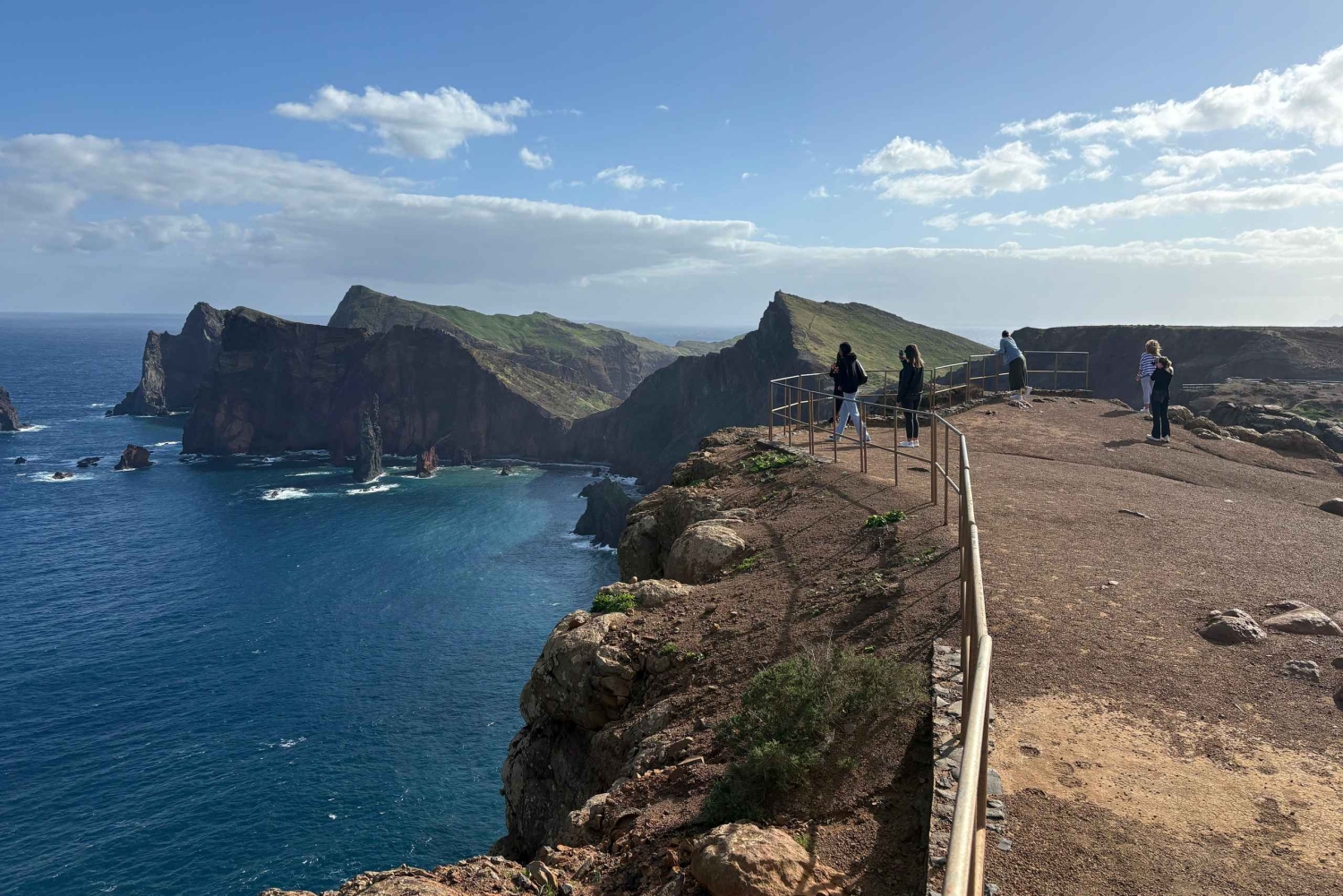 De tocht eindigt bij de indrukwekkende Ponta de São Lourenço, het meest oostelijke puntje van het eiland. Hier zorgen de roodachtige kliffen en het contrast tussen de zee en de rotsen voor een uniek landschap. Op heldere dagen kun je het eiland Porto Santo aan de horizon zien. Tot slot bezoeken we het charmante Prainha, een zwart zandstrand in een natuurreservaat van zeeleven — de perfecte setting om te ontspannen voor de terugkeer.