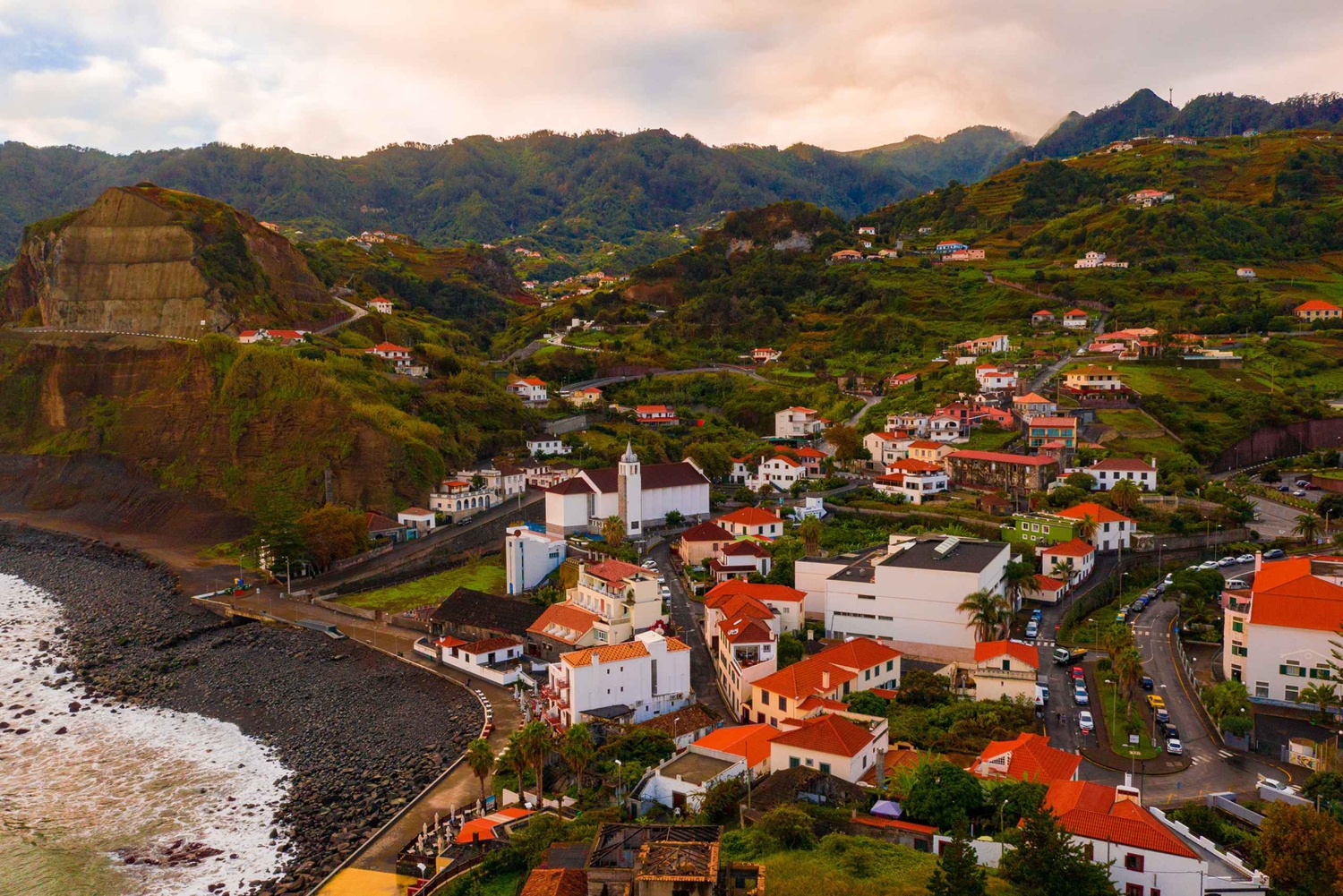 Kontynuuj podróż do malowniczej miejscowości Ponta Delgada na lunch. Następnie udaj się dalej na zachód wzdłuż dzikiego wybrzeża, aby dotrzeć do São Vicente w pięknej dolinie.