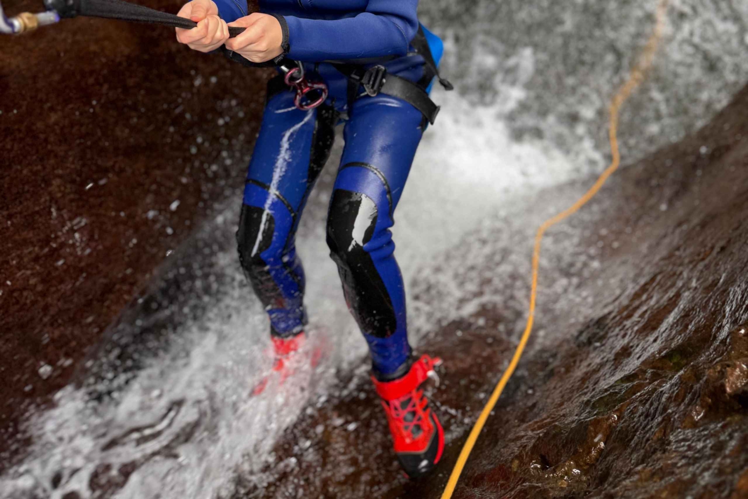 4- Gear (neoprene suit, neoprene socks, helmet, harness, Adidas TERREX canyoning boots);